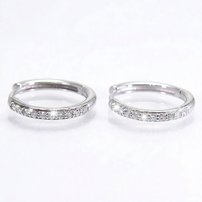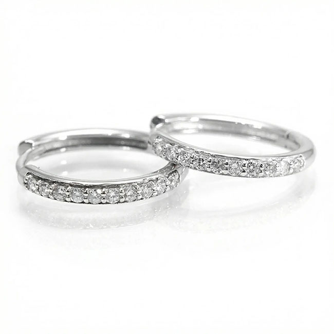 Pendientes tipo criolla de oro blanco de 18 quilates con brillantes engastados en la zona frontal. Llevan 20 diamantes en talla brillante cuyo peso total es de 0.40 quilates. La calidad de su pureza es VS y la de color es H. Los aretes miden 16 mm. aprox. de diámetro por 2 mm. aprox. de ancho. Tienen una medida ideal que los convierte en un básico de extraordinaria elegancia. Además se pueden combinar con distintos colgantes, lo que convierte a estos aros en unos pendientes importantes y sofisticados. Sin duda son unos pendientes que nunca pasarán de moda, una auténtica inversión de por vida.1119€