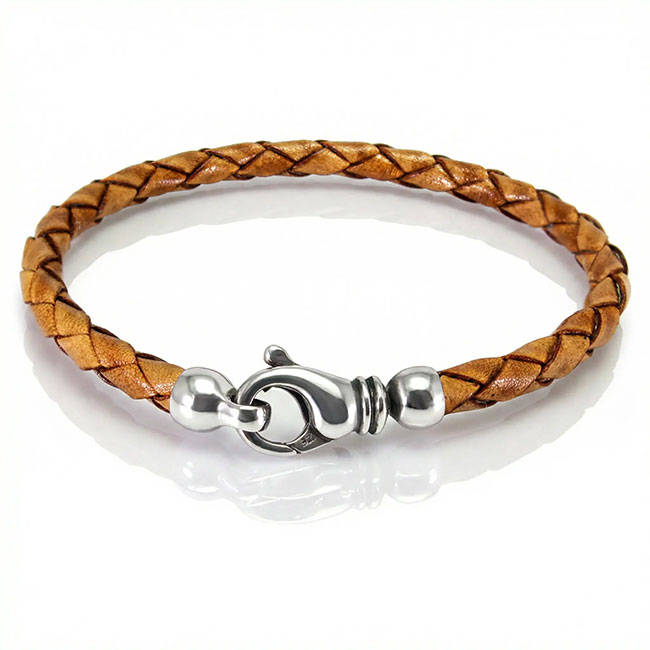 Pulsera de cuero trenzado con cierre de plata de 925 mm.