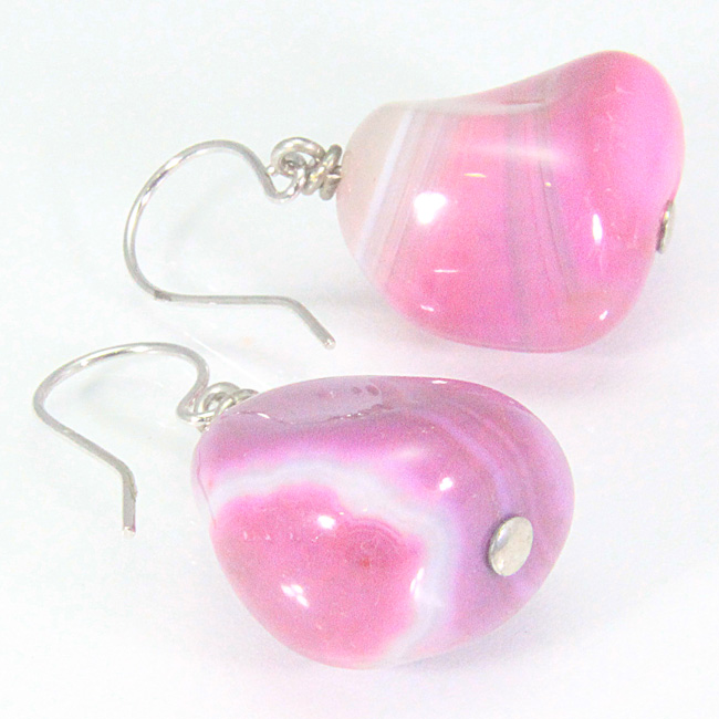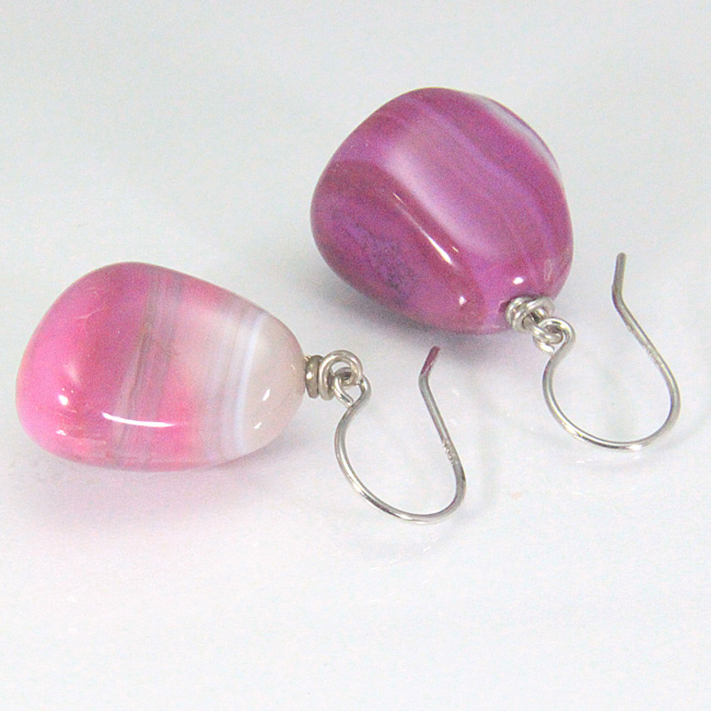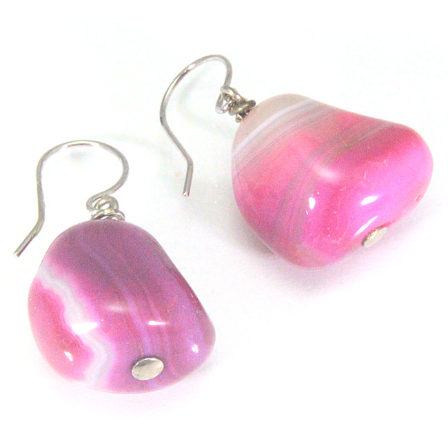 Pendientes de plata de 925 mm. bañada en rodio con ágatas de color rosa fucsia. Son de la firma Patricia García.