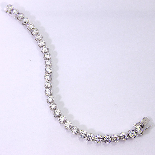 Pulsera de plata de 925 mm. bañada en rodio. Las piedras son circonitas en talla brillante. Mide aprox. 18 cm. por 5.55 mm. de ancho.