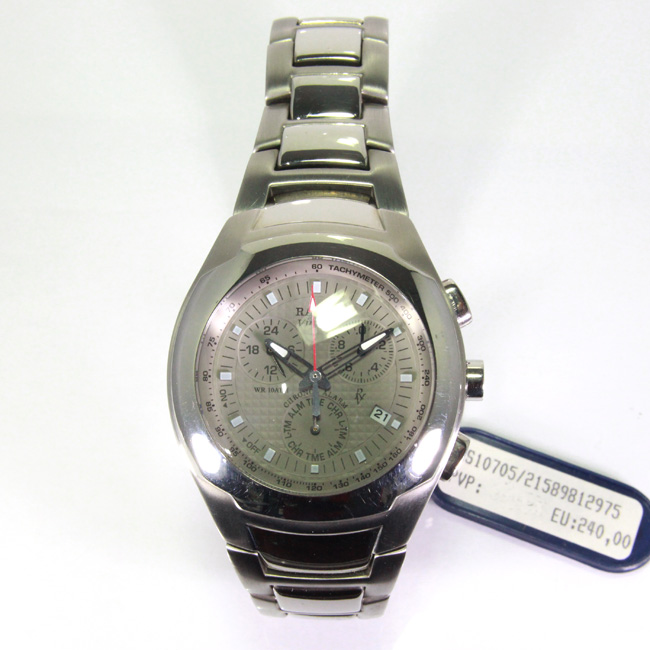 Reloj Racer de acero con cierre oculto. Cronómetro y calendario.