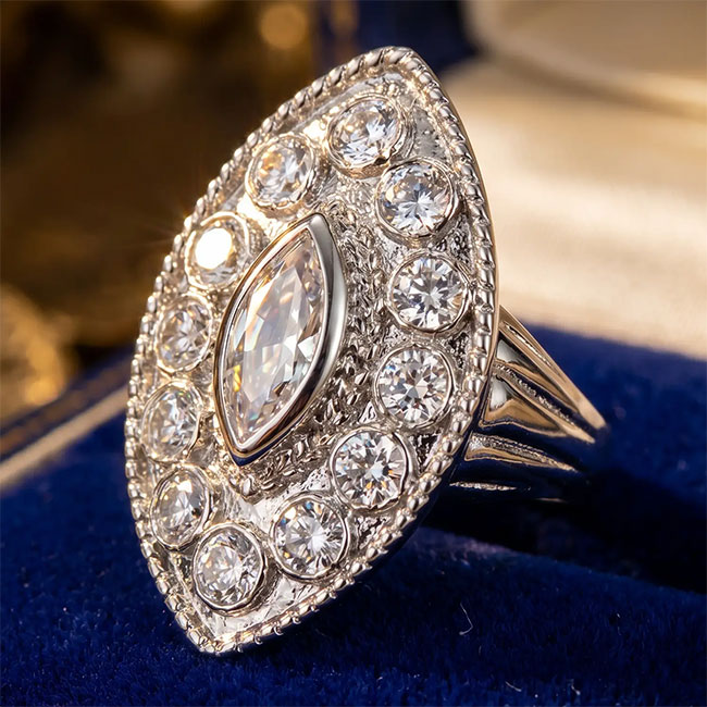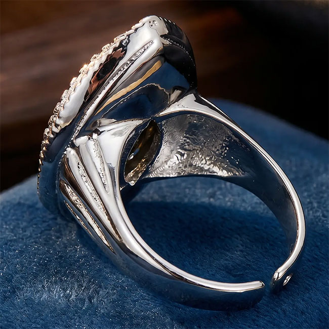 Sortija realizada en plata de 925 mm. bañada en rodio con circonitas. Elaboración artesanal. El anillo va acabado abierto para adaptarse a cualquier tamaño de dedo. Lleva una pequeña perforación para coser el pañuelo. Consulte nuestras tarifas de alquiler de aderezos regionales.180€