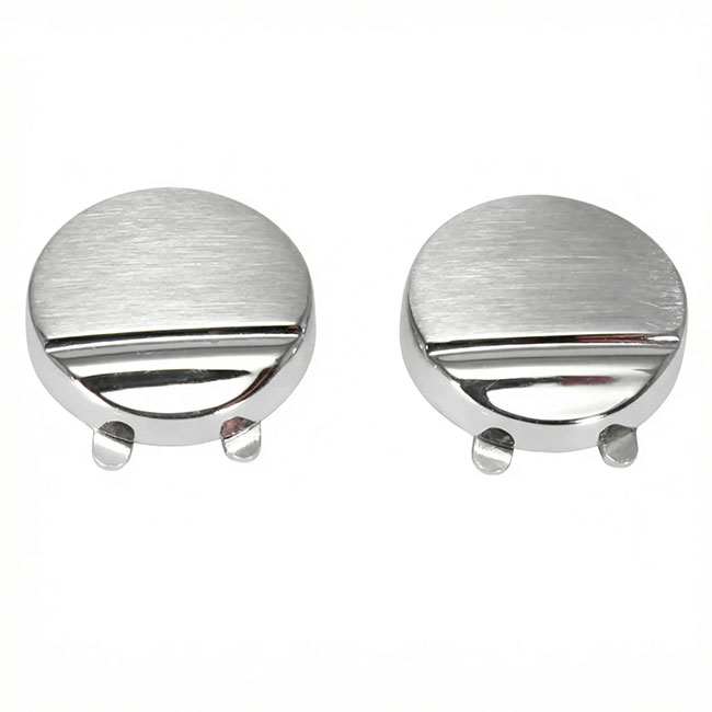 Cubrebotones de oro blanco de 18 quilates. Los acabados combinan el mate con el brillo. En total pesan 4.2 gramos. Cubrebotones muy elegantes, ideales para ceremonias.