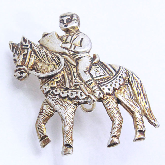 Alfiler para solapa en forma de "pregoner" en referencia a las Fiestas de la Magdalena. Realizado en plata de 925 mm.