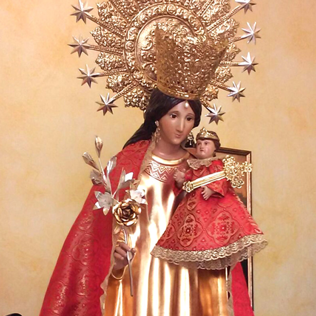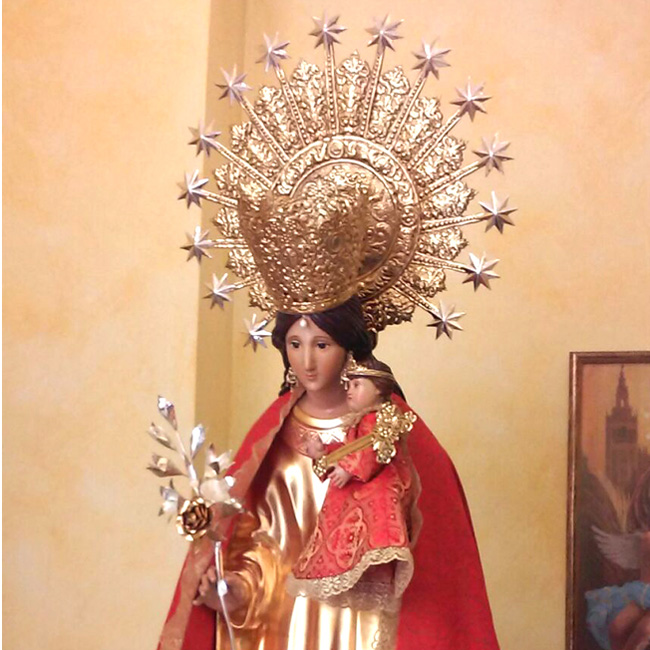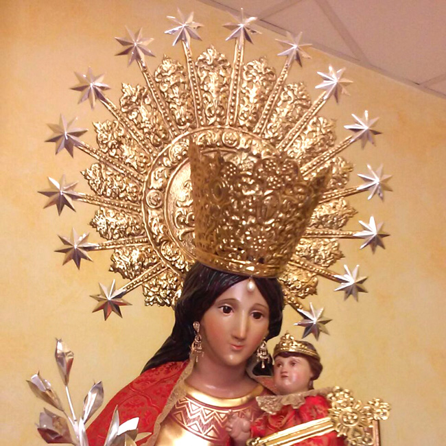 Juego de coronas y complementos realizados para la Virgen de los Desamparados de la parroquia Santa Isabel de Villarreal.