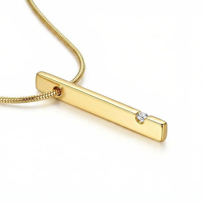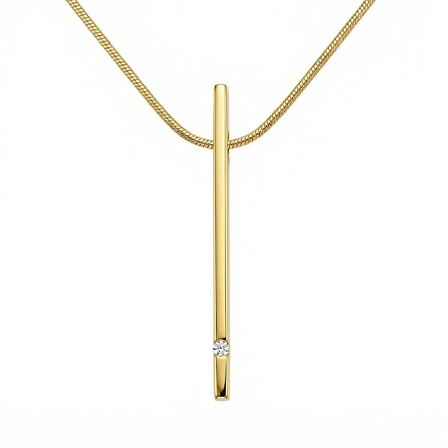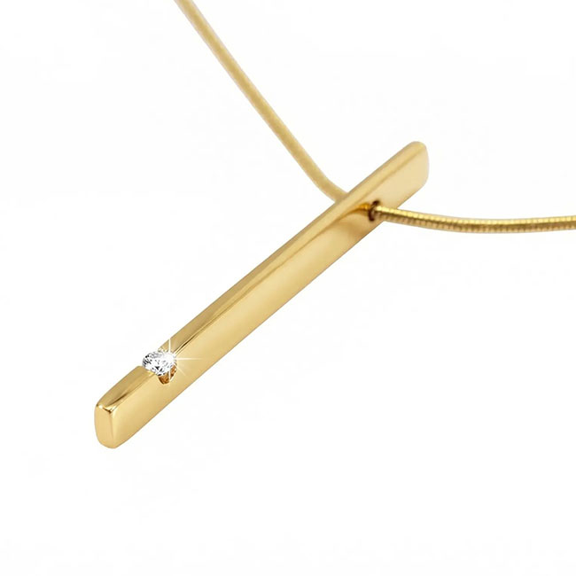 Gargantilla compuesta por cadena y colgante de oro de 18 K. Lleva un diamante en talla brillante de 0.005 cts. Su calidad de color es H y la de pureza Vs. Elegante gargantilla de estilo minimalista. La cadena mide 40 cm. y lleva cierre de asa. El colgante mide 29 mm.1320€