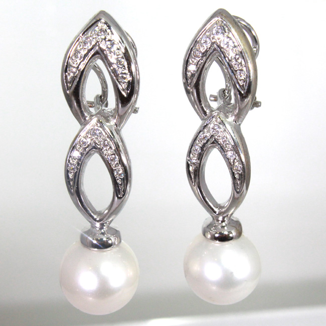 Pendientes de plata con baño de rodio. Las piedras son circonitas y perlas sintéticas. Llevan cierre omega. Miden aprox. 44.74 mm. de largo. Las perlas miden 12.13 mm. de grosor. Preciosos pendientes ideales para novias y galas.121€
